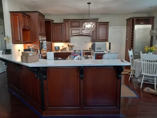 Kitchen cabinets are storage units installed in kitchens, constructed from materials such as wood, MDF, stainless steel, or laminate. They come in upper and lower configurations to maximize space and keep essential items organized and easily accessible. Finishes include painting, staining, or laminate overlays, providing resistance to moisture and heat. Kitchen cabinets are available in various styles, including face frame designs with wooden frames and frameless styles that maximize interior space. Hardware such as hinges and drawer slides ensures smooth operation and durability, while ergonomic design enhances usability. Proper installation and design are crucial for optimal functionality and aesthetic appeal in kitchen spaces.